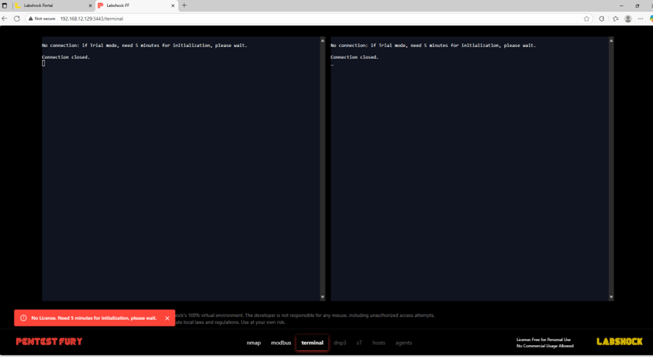 However, while using the Pentest Fury module of LabShock, you may run into a license validation restriction applied by the creators. This is a genuine restriction, designed to limit usage of the lab for a short initialization period. The message typically says: