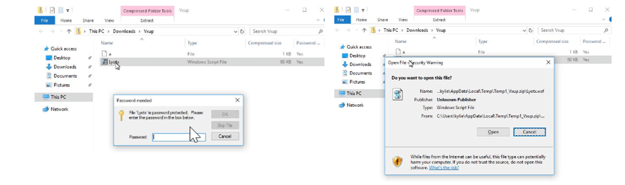 The ZIP file was password-protected using standard archive encryption, which prevented email security tools from inspecting its contents. This technique is commonly used to bypass attachment scanning and sandbox detonation.