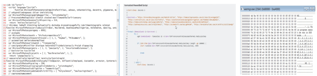wscript.exe→ launches PowerShell- PowerShell → drops disguised DLL (